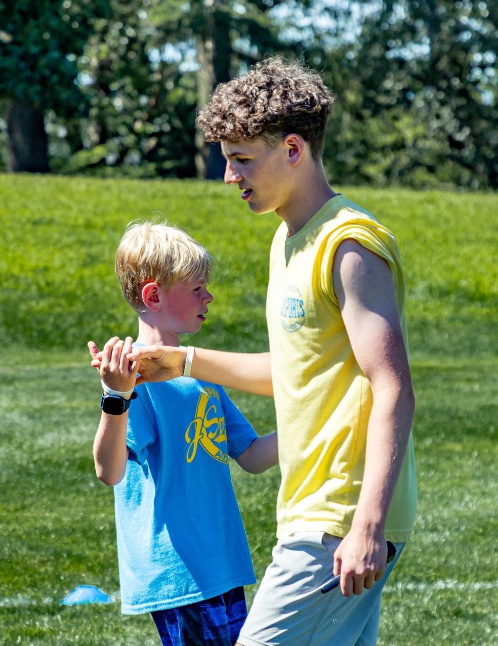 After lunch, Thomas brings his campers to their counselor-run electives, or “overtime sports.” He especially enjoys this time because it allows him to be creative in thinking of games and activities. It also allows him to get to know his campers better. “I enjoy the opportunity to jump into a coaching role to teach my campers some skills and lessons that I have been taught over the years,” Thomas said. Once the elective period is over, campers head to their second sport of the day, then have one last elective period before heading home.